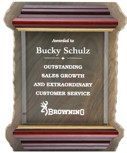 The thrill of winning an award is heightened when the awards are exquisite ageless designs. Elevating a glass panel above the radiant natural slate background allows your etched message to stand out and cast an intriguing shadow. For a touch of rich tradition, gold-trimmed, cherry-finished wood blends harmoniously with the warm tones of slate.