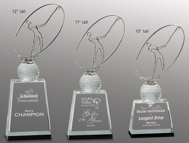 - This stunning silver and optic crystal golf award is available in 3 sizes: