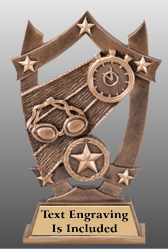 The shield is mounted on a bronze pedestal that holds an engraving plate