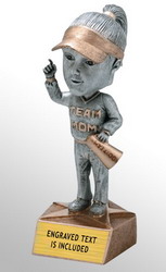 - Gold accents on silver resin team mom bobblehead trophy