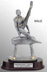 - Hand painted gold highlights add dimension to the male gymnast and pommel horse