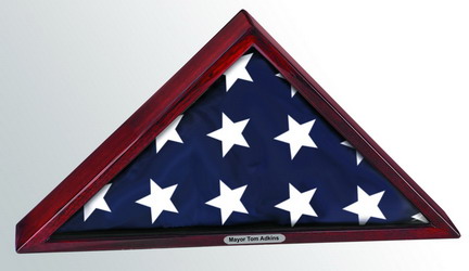 - Additional engraving can be placed on an optional plate mounted on the back of the flag display; please inquire about the cost of this service