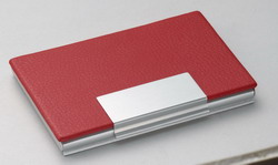 Card Holder Red Leather Aluminum with Stainless Steel Clasp