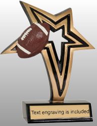 - On the upper left side of the trophy is a brown hand-painted football with white detailing