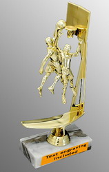 Double action gold male or female basketball figures at the hoop