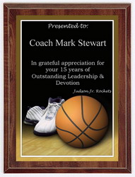 - Direct color print of basketball, shoes and court on aluminum award plate