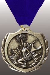 Dimensional design of a cheerleader and megaphone surrounded by victory leaves
