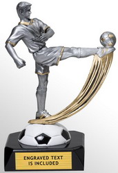 Action resin soccer player is silver with gold highlights