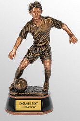 - Multi-tone antique gold and bronze painted soccer sculpture