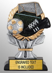 - Beautifully painted resin soccer ball, shoe, and goal trophy