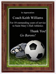 - Direct color print of soccer ball, shoes and field on aluminum award plate