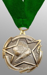 Dimensional detail of soccer ball and soccer shoe within raise star outline