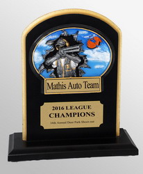 Colorful hand painted shooting scene is 6" tall x 7 1/4" wide
