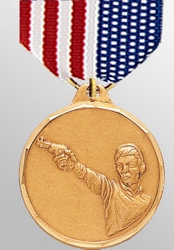 Medallion is gold with raised image of shooter with pistol