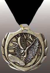 Dimensional design of a winged shoe and stop watch surrounded by victory leaves