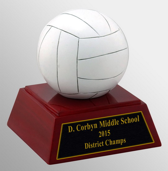 - Volleyball is displayed on a rosewood finished pedestal