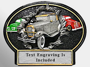 - Detailed sculptured vintage car burst through oval