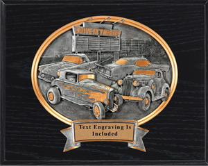 8" x 8 1/2" oval custom roadster car and drive-in scene