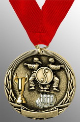 - Detailed karate figures in antique gold, fist is silver, and trophy cup is polished gold