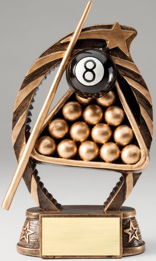 - The 3-D pool cue and rack of balls is finished antique bronze