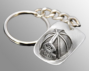 - 1" wide x 1 1/2" tall pewter firefighter helmet key chain