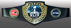 - Left and right gold plates hold a 2" diameter logo/mascot