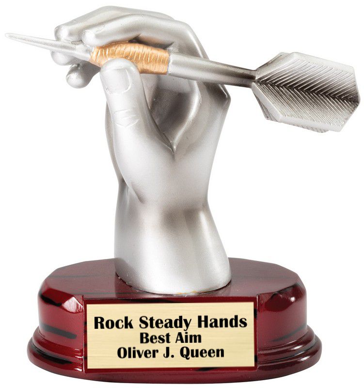 5 3/4" tall Resin Trophy of a Dart in Hand