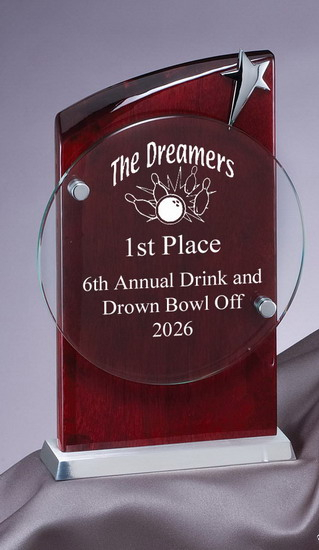 - Rosewood piano finish plaque mounted on highly polished silver metal base